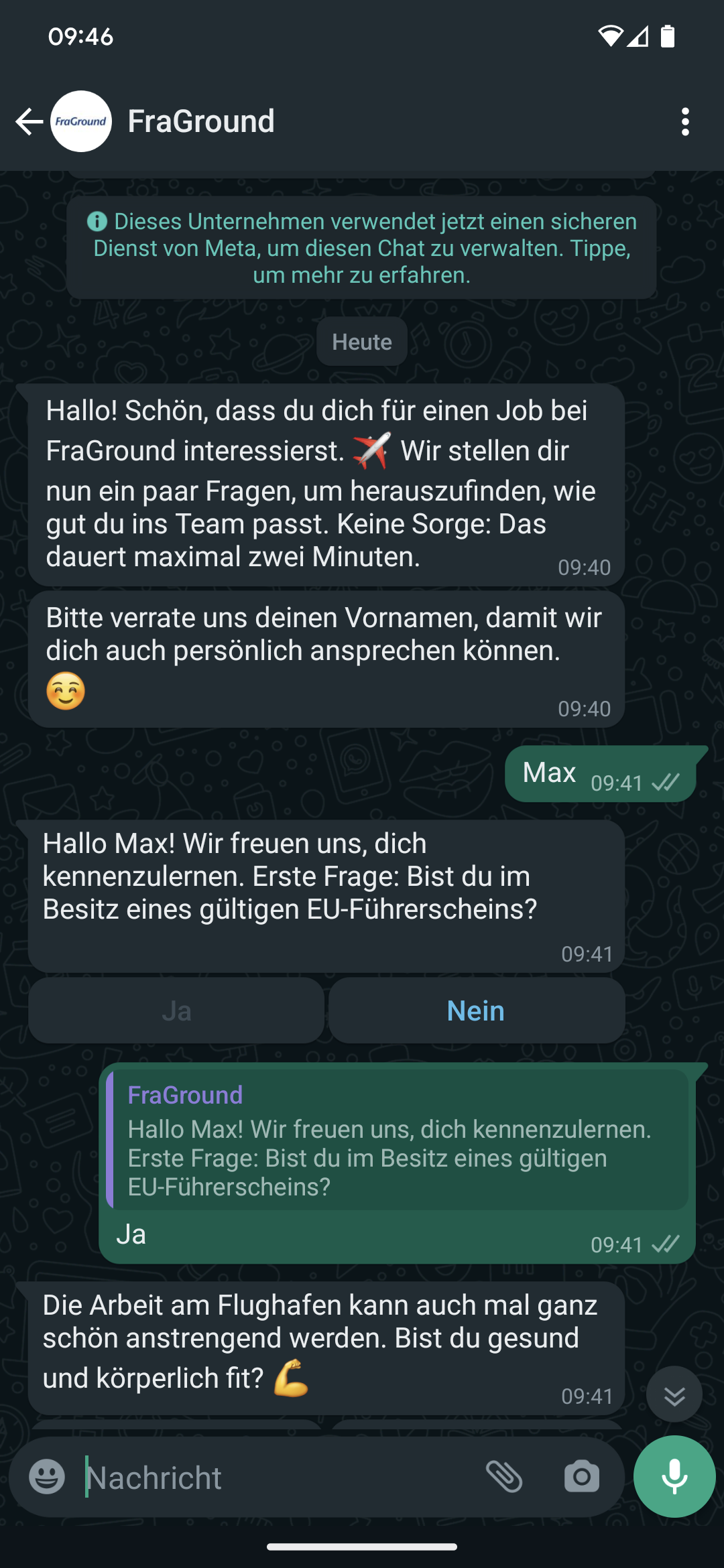 Bewerber nutzen WhatsApp und werden durch den freundlichen Chatbot vorqualifiziert.